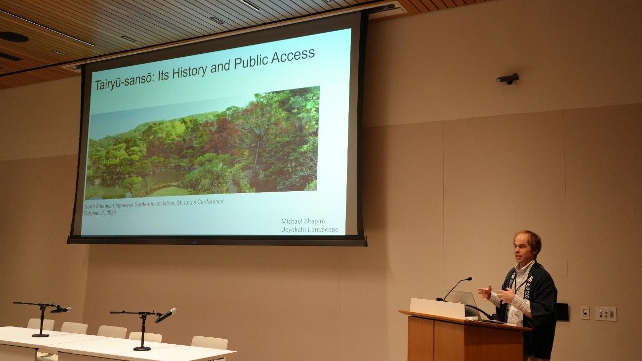 During October 15-18, the North American Japanese Garden Association (NAJGA) held its biannual conference at the Missouri Botanical Garden in St. Louis. Michael Shapiro of the Heritage and Garden Artistry Division gave a presentation on Tairyu-sanso Garden, which has recently opened to the public, and discussed the history of foreign guests who have visited the garden in the past. The diversity of these guests show Tairyu-sanso was early seen as a place to share the cutting edge of Japanese garden design with the world.
