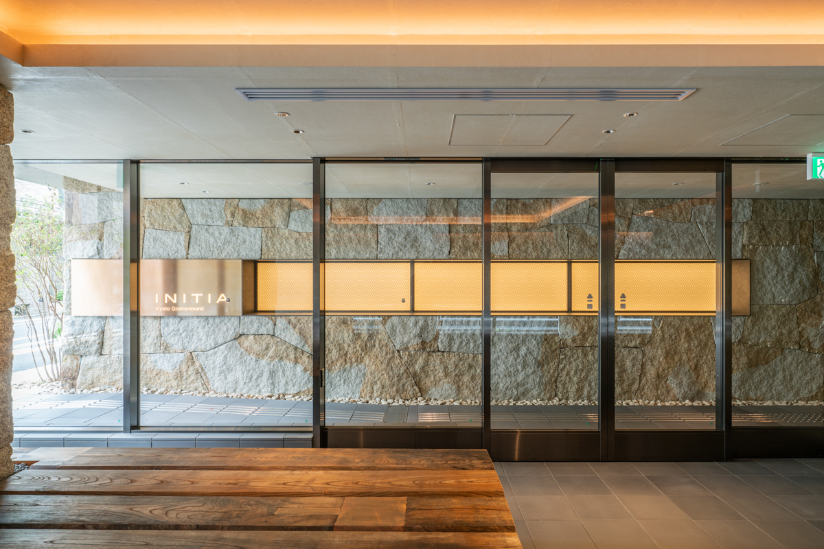 植彌加藤造園は、株式会社コスモスイニシアの50周年記念プロジェクトである達磨町プロジェクトにて、京都御所南のマンション一階壁面と石テーブルの施工を行いました。