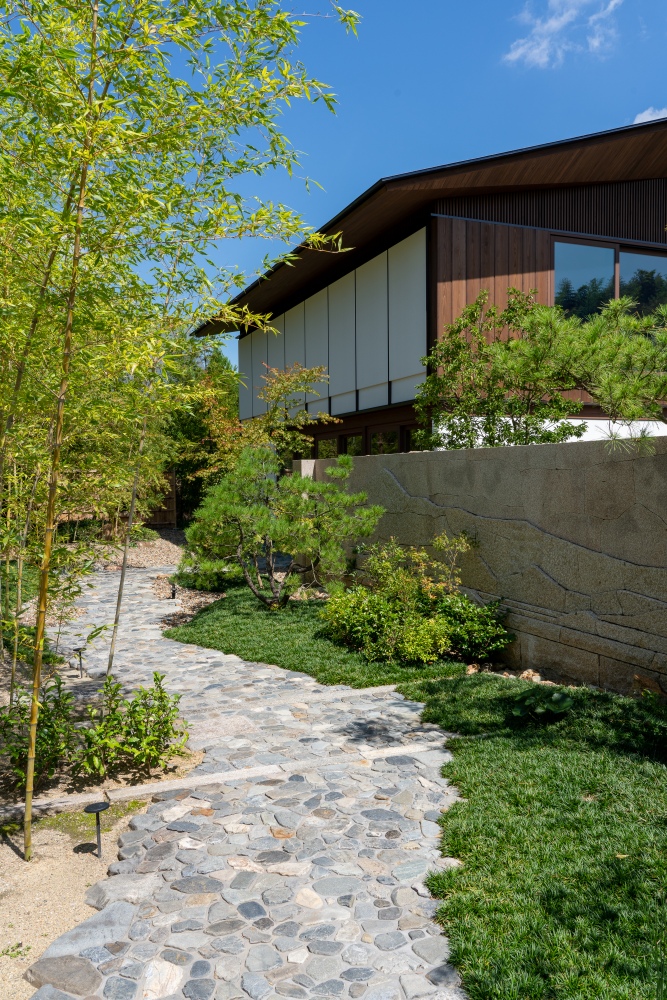 京都嵯峨野山墅(きょうとさがのさんしょ)は2020年に京都市右京区に新築された個人邸です。敷地の約3/4を占める庭園の計画・設計・施工を弊社が担当させていただき、建築計画・設計はLAYAN ARCHITECTS + DESIGNERS、株式会社設計組織アモルフが担当されました。各社の専門性を最大限に活かし、連携を図りながら、プロジェクトに取り組んでいきました。