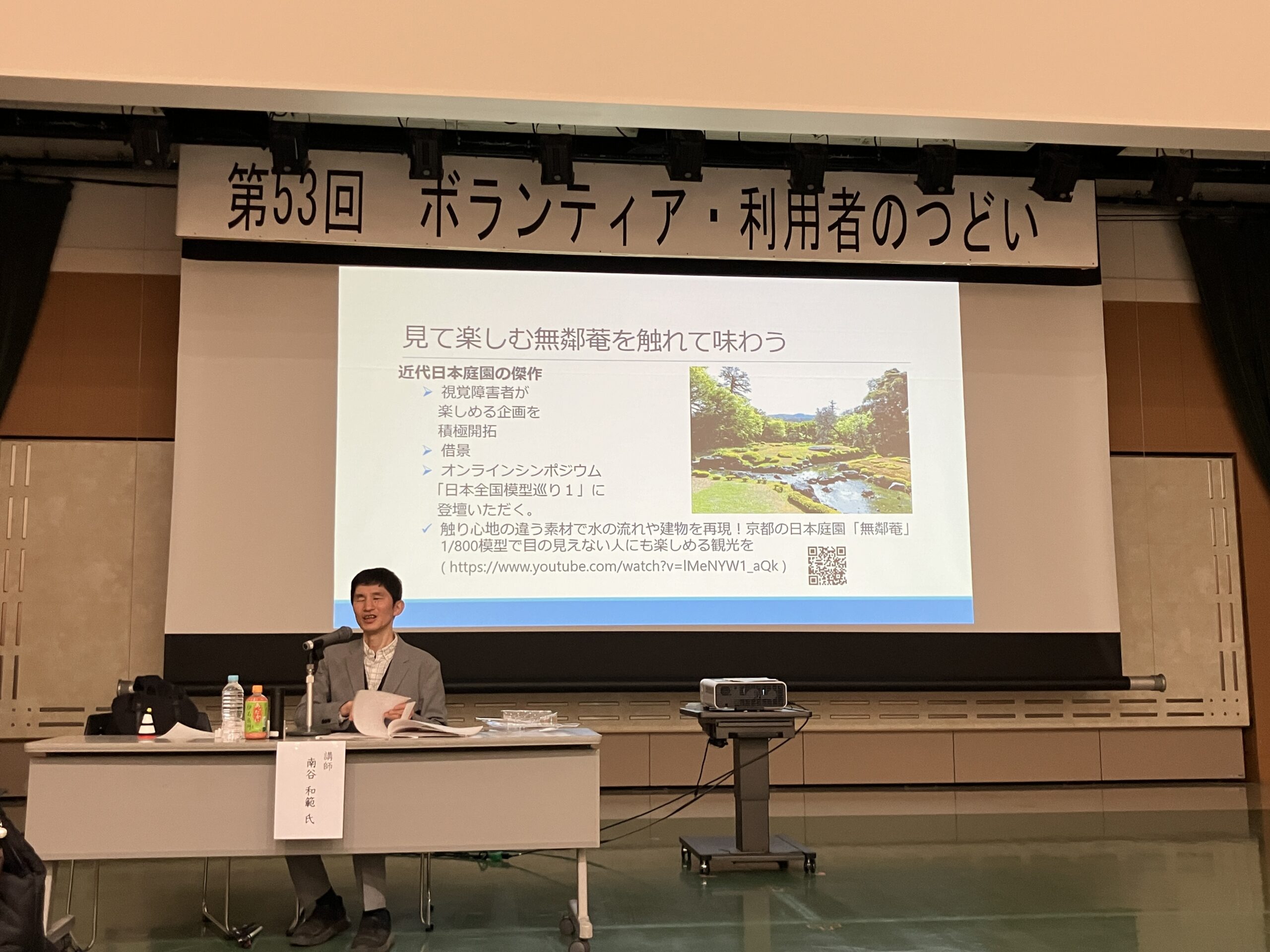 視覚障害児・者の方々のための総合福祉施設である京都ライトハウスでボランティア活動をなさっている方々に向けた第53回「ボランティア・利用者のつどい」が2026年3月5日に行われました。独立行政法人 大学入試センター研究開発部の南谷和範氏の講演「見て楽しむ京都を触れて味わう−私の仕事と研究から−」の中で、無鄰菴の借景と、定期的に実施しているイベント「未知の庭」が取り上げられました。また、講演内で使用された画像と、それに関する情報提供を、主任学芸員の重岡伸泰が行いました。